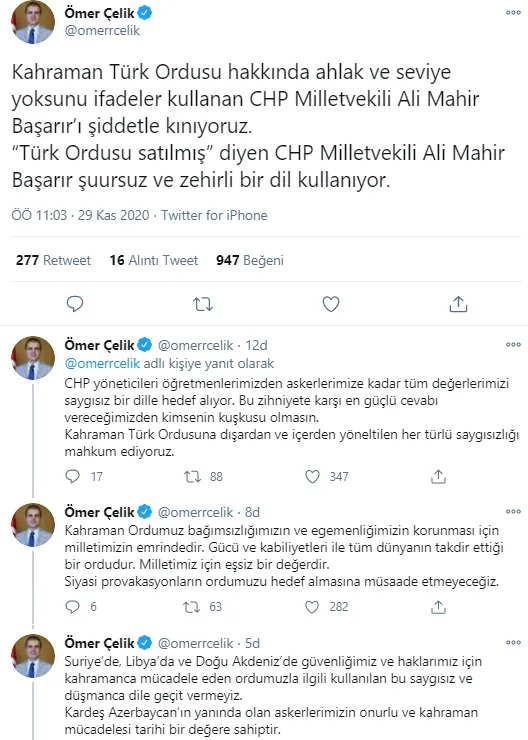 * Şerefli ve kahraman Türk ordusuna satılmış diyenleri unutmayacağız, bu iğrençliğe paravanlık ve payandalık yapanları unutturmayacağız. Demokrasinin ardına saklanıp Türkiye'yi devirmeye azmetmiş kan içici kenelere, önemle ifade ediyorum ki, müsaade etmeyeceğiz. Bu hesabı soracağız.